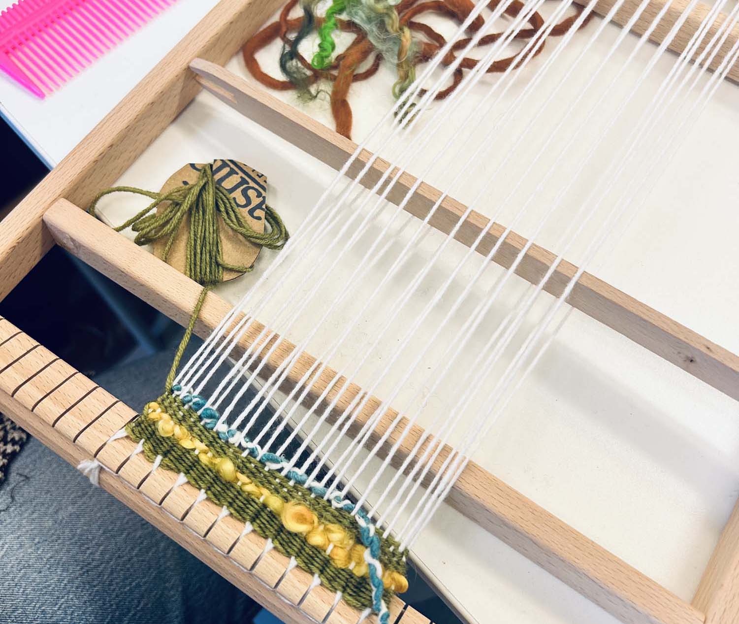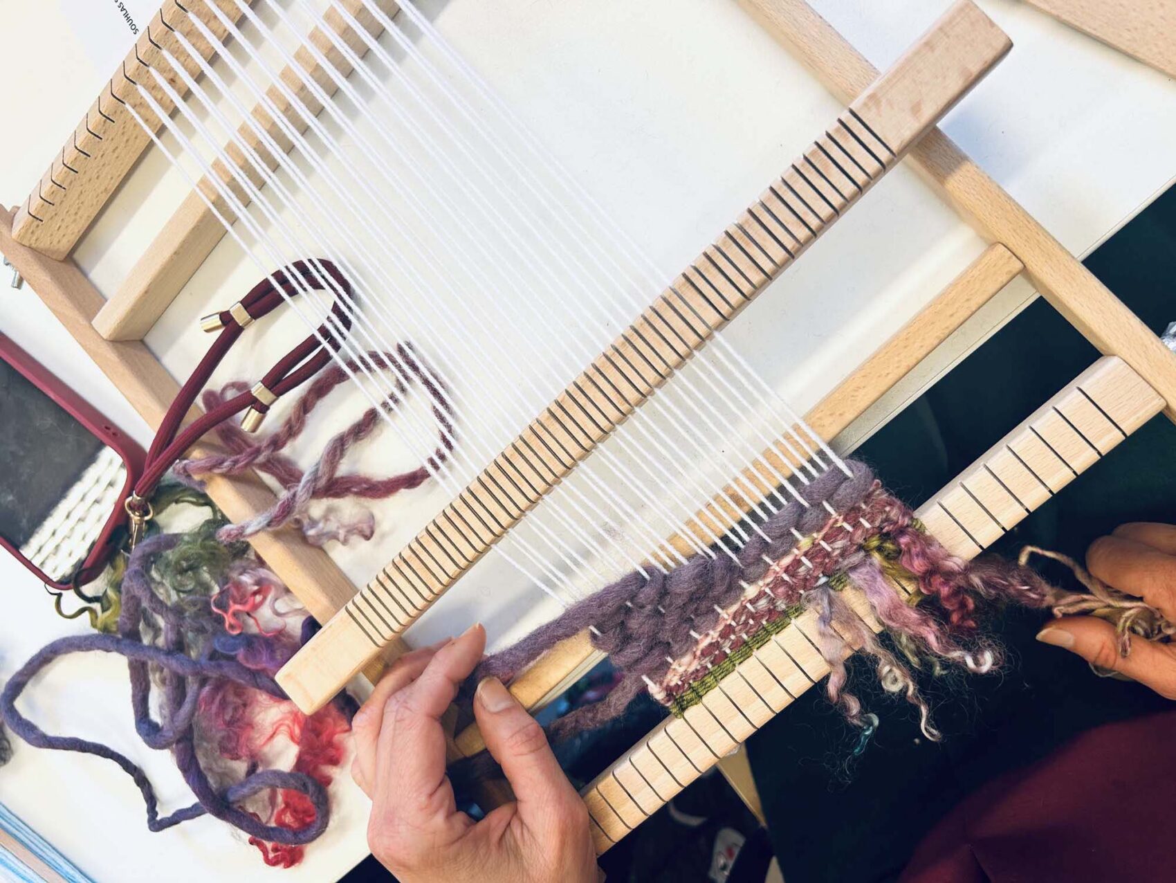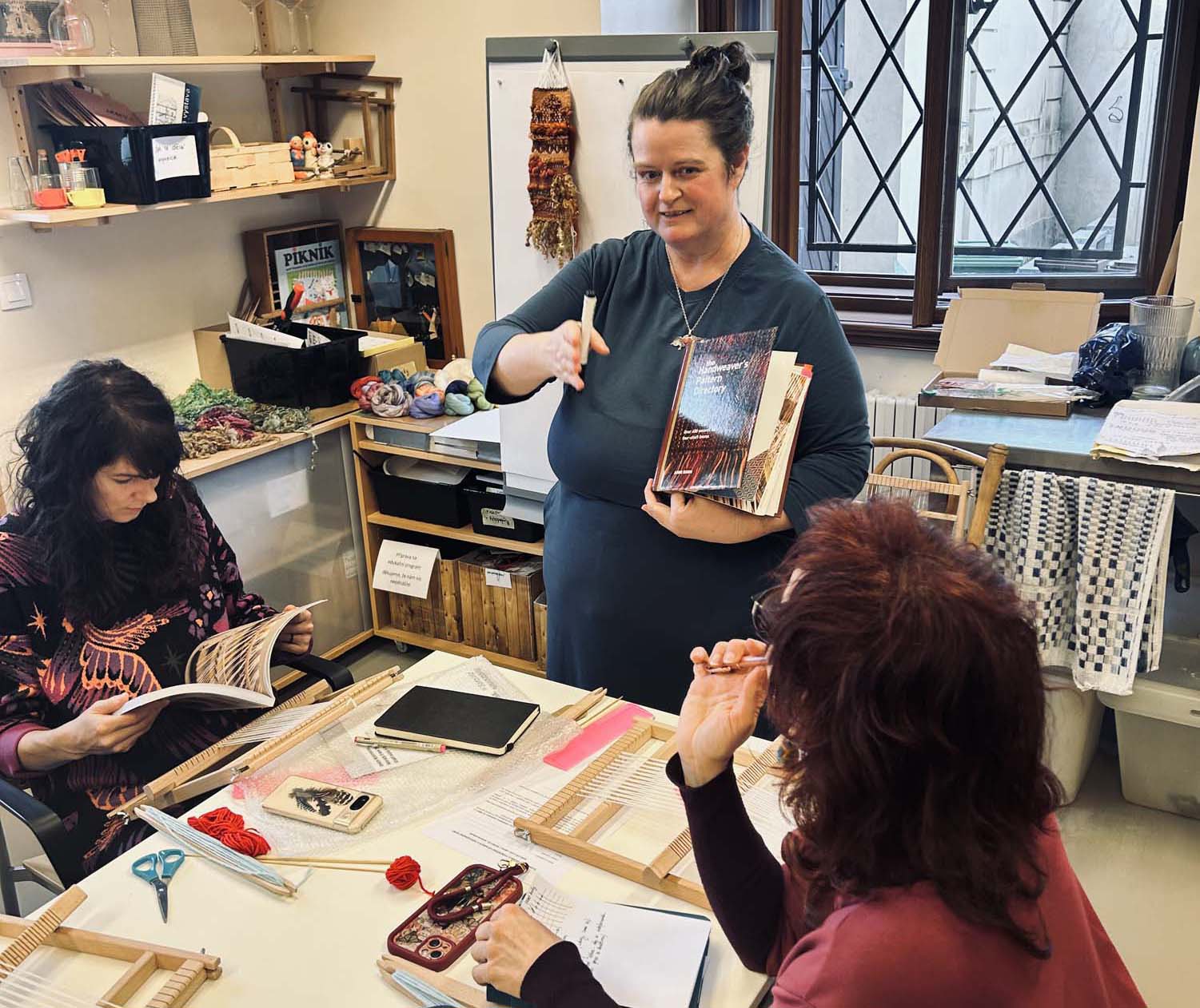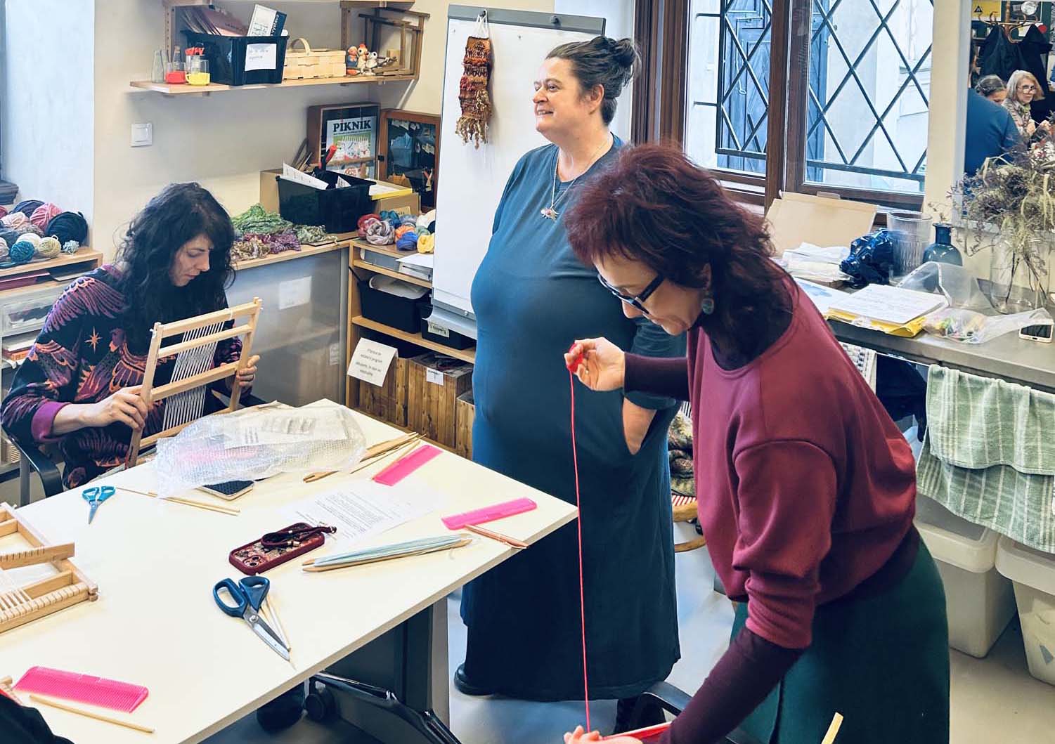 Tříhodinový workshop byl nabitý energií Evy Vobrové, která účastníky seznámila se základními typy vazeb a s možnostmi experimentování s vlákny. Všichni si odnesli malý rám se svým dílem, aby mohli dál pokračovat doma.